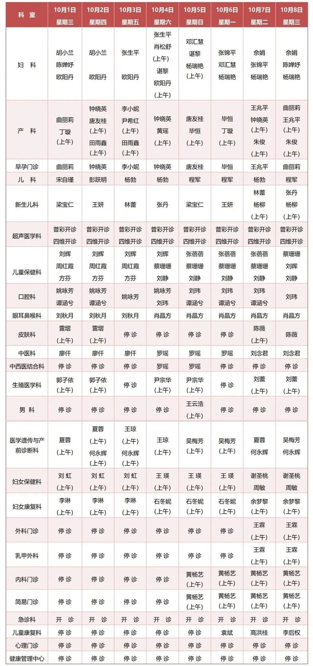 “上午”表示僅上午開診,下午停診?!巴T\” 表示全天停診。部分科室坐診情況具體以公眾號掛號系統(tǒng)為準(zhǔn)。給各位市民朋友就醫(yī)就診帶來不便,敬請諒解!